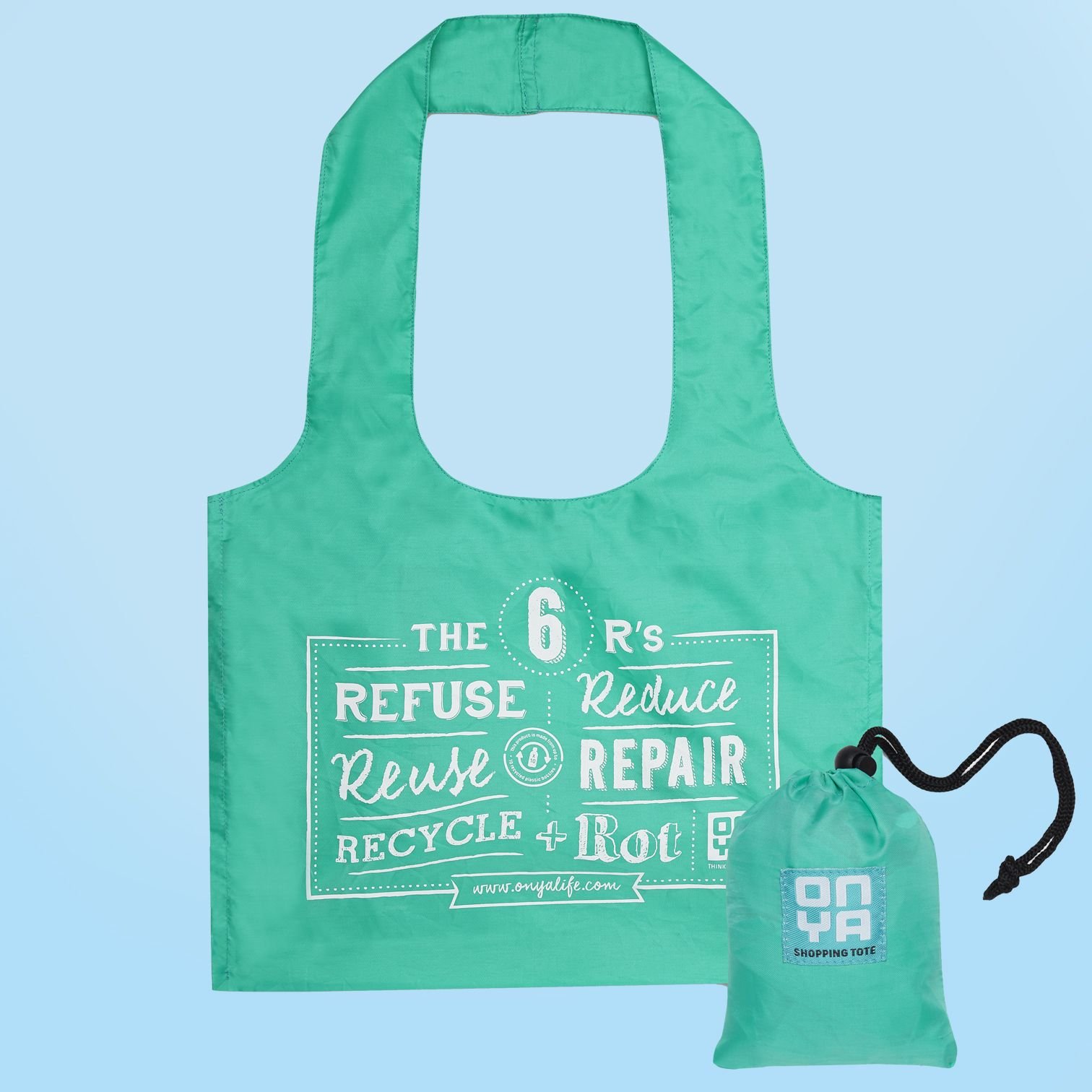 Lleva tus compras, frutas, verduras y recipientes de alimentos a granel, de manera fácil y con estilo gracias a esta bolsa de la compra reutilizable hecha de botellas de plástico recicladas.